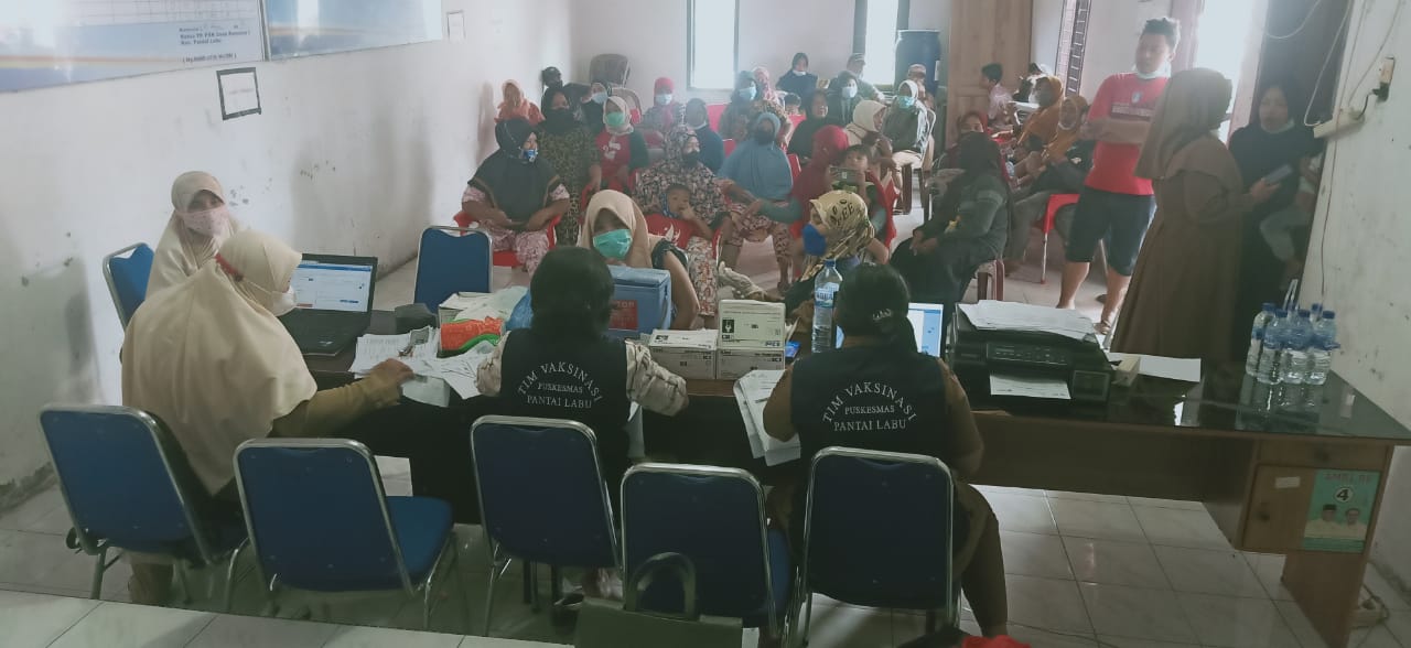 Deli Serdang Tintamediakepri.id. Puskesmas Kecamatan Pantai Labu bersama Pemerintah Desa Ramunia 1 Kecamatan Pantai Labu Mengadakan kegiatan Vaksinasi Dosis I dan Dosis II Mulai usia 12 tahun hingga lansia yang dilaksanakan di aula Desa Ramunia I Kecamatan Pantai Labu Kabupaten Deli Serdang, Selasa (30/11/2021)
