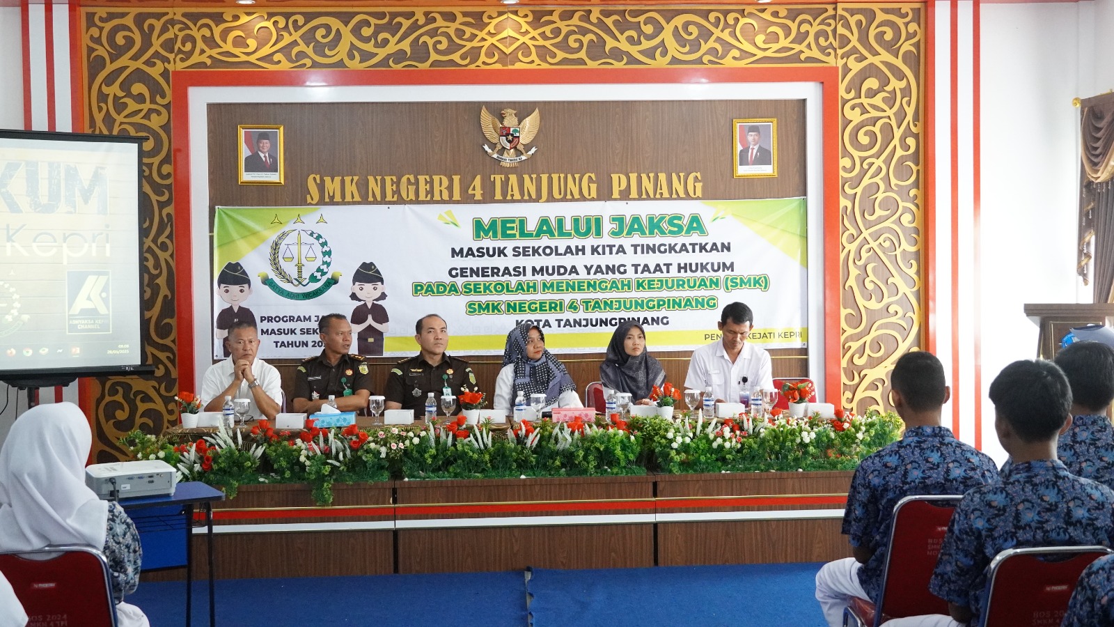 Tanjungpinang, Tintamediakepri.id. Kejaksaan Tinggi Kepulauan Riau melalui Program Pembinaan Masyarakat Taat Hukum (BINMATKUM) pada kegiatan Penyuluhan Hukum kembali menggencarkan kegiatan Program Jaksa Masuk Sekolah di SMKN 3 Tanjungpinang dan SMKN 4 Tanjungpinang dengan mengangkat tema tentang “Pencegahan Penyalahgunaan dan Peredaran Gelap Narkotika, Psikotropika dan Zat Adiktif Lainnya (Napza) serta Anti Perundungan (Bullying) dan Bijak Bermedia Sosial”.