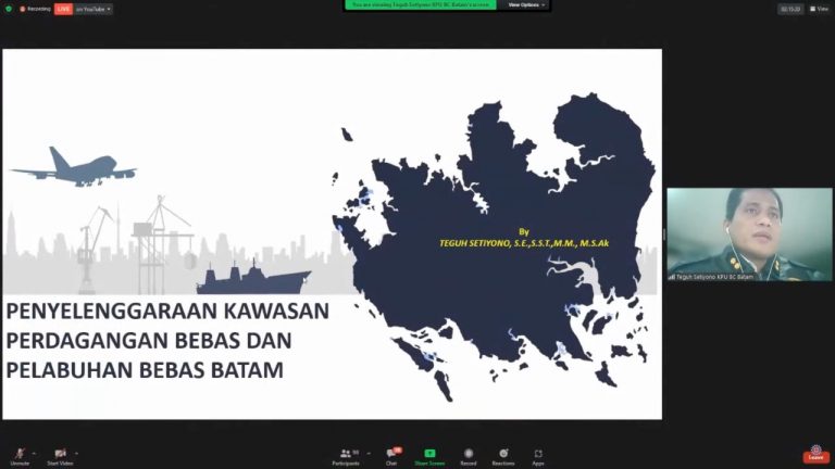 Tintam3diakepri.id.Bea Cukai Batam diwakili oleh Kepala Seksi Pabean dan Cukai III, Teguh Setiyono, menjadi salah satu narasumber dalam acara yang bertajuk “B to B Opportunities Kepri-Malaysia: Pandemi, Tetap Optimis Untuk Mencari Peluang Bisnis”. Acara tersebut diselenggarakan oleh Al Ahmadi Entrepreneurship Center (AEC) dan Dewan Perniagaan Melayu Malaysia (DPMM) pada Sabtu, 28 Agustus 2021 secara daring.