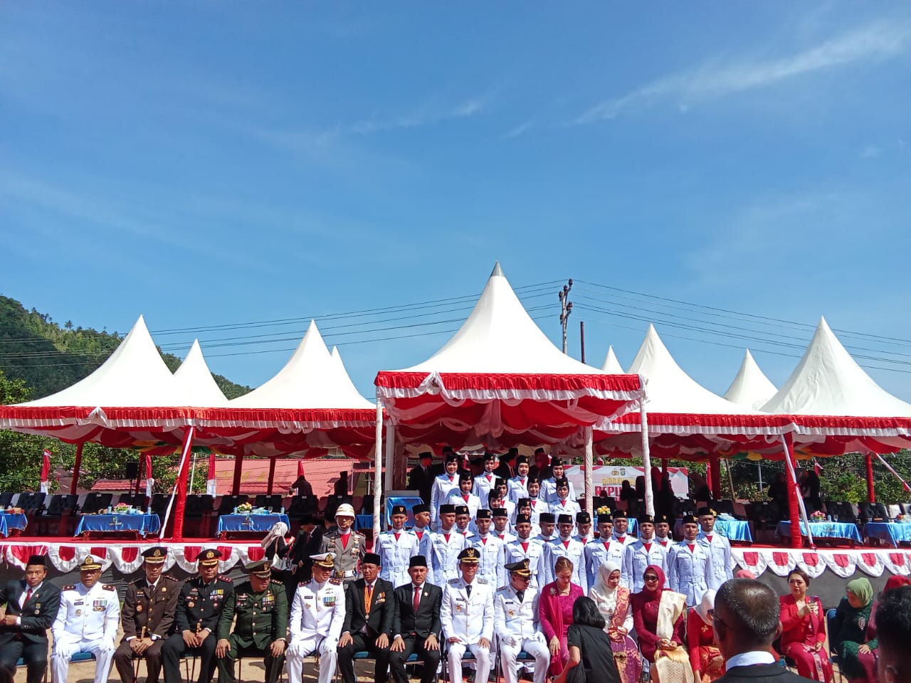 Bagian paling sakral terjadi saat pasukan Paskibraka Kabupaten Kepulauan Anambas memasuki lapangan dengan langkah tegap membawa Sang Merah Putih. Diiringi lantunan “Indonesia Raya”, bendera pusaka berkibar megah di angkasa, dan seluruh peserta berdiri memberi penghormatan penuh hormat.
