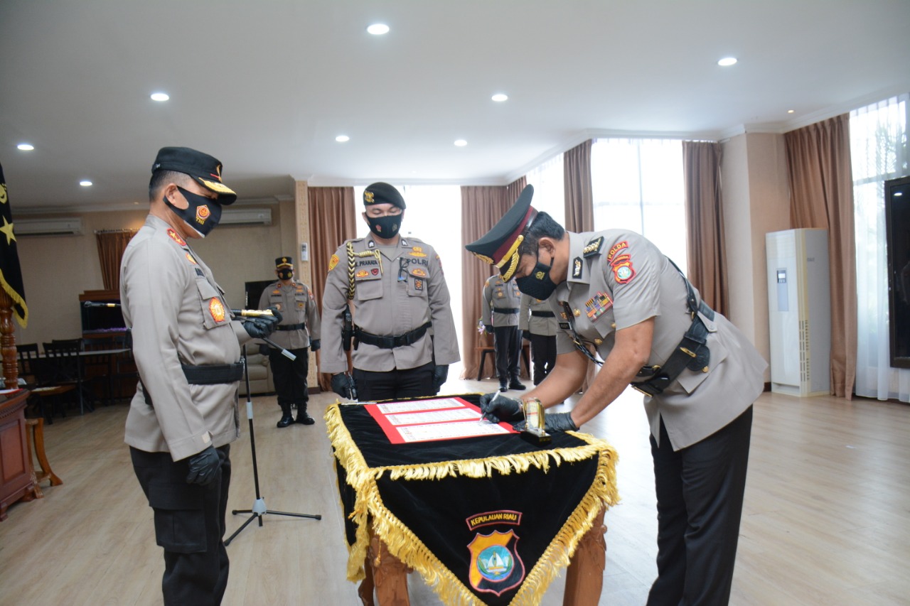 “Dalam upacara pelantikan Irwasda Polda Kepri tersebut Kapolda Kepri selaku pimpinan Polri diwilayah Provinsi Kepulauan Riau langsung memimpin pengambilan Sumpah jabatan kepada pejabat yang akan dilantik dan pada saat upacara pelantikan dilaksanakan juga penandatanganan berita acara serah terima jabatan, berita acara sumpah jabatan serta penandatanganan pakta integritas, yang merupakan hal wajib dilakukan kepada pejabat yang dilantik”. ujar Kabid Humas Polda Kepri Kombes Pol Harry Goldenhardt S., S.IK., M.Si.