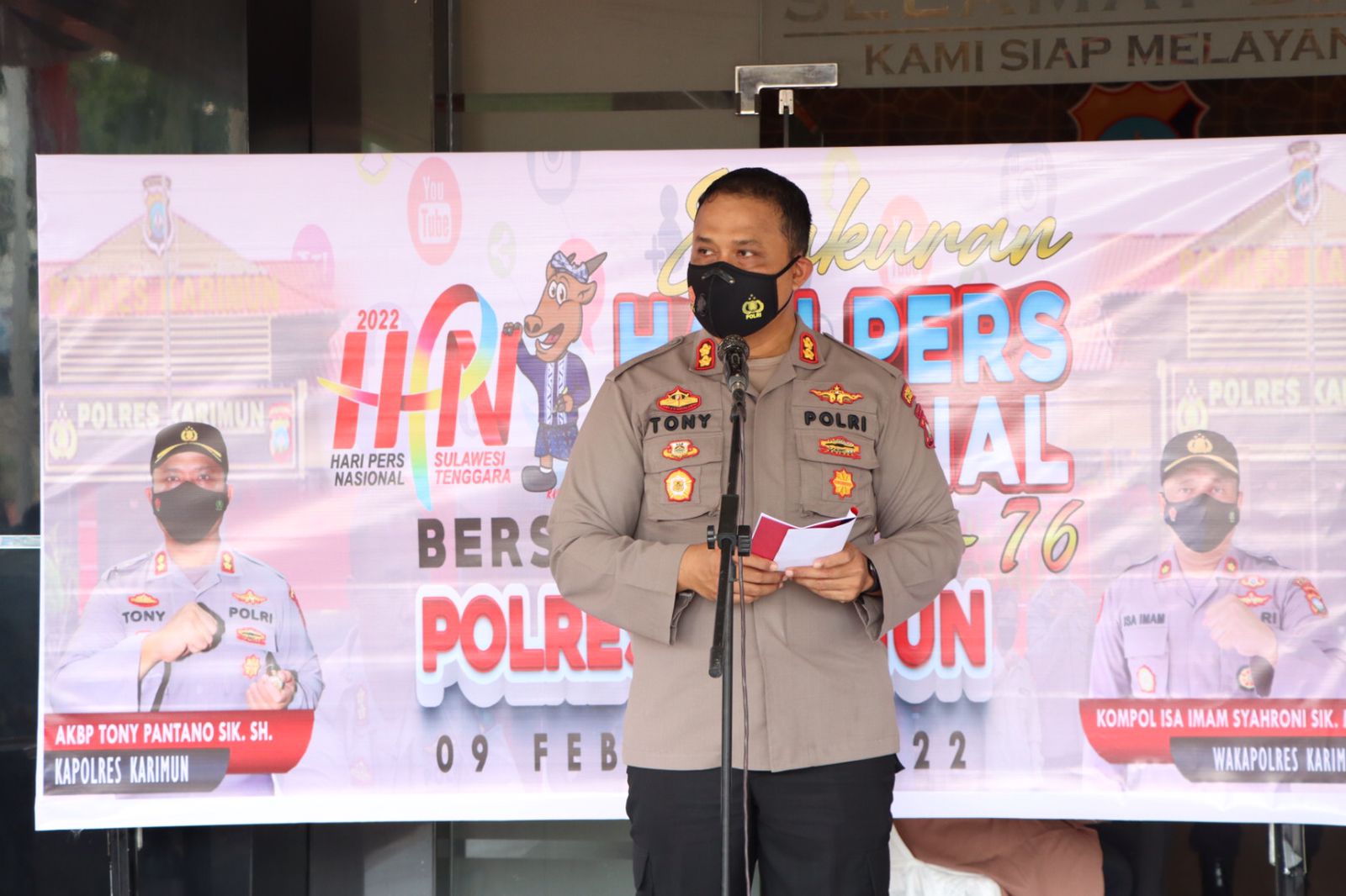 Karimun ,Tintamediakepri.id. – Dalam rangka memperingati Hari Pers Nasional (HPN) Tahun 2022, Kapolres Karimun AKBP TONY PANTANO, SIK, SH menggelar kegiatan tasyakuran yang bertempat di Polres Karimun dengan menerapkan Protokol Kesehatan, Rabu (09/02/2022).