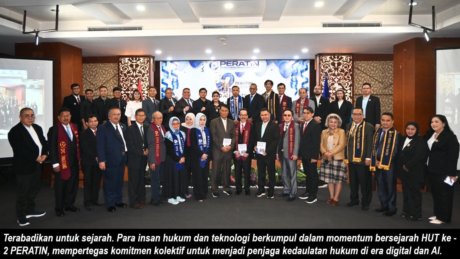 “Pada puncak acara HUT ke-2 PERATIN, kami tidak hanya mendapat sambutan tertulis, tetapi kehadiran langsung dari Staf Ahli Menteri Hukum RI, Dr. Sucipto, S.H., M.H., M.Kn., yang dalam sambutannya menyatakan ‘Kami dari Kementerian Hukum RI mendukung penuh keberadaan PERATIN’,” jelas Hoky, sapaan akrabnya yang juga menjabat sebagai Ketum APTIKNAS, Ketum APKOMINDO, Penasihat FORMAS, Waketum SPRI, Ketua Dewan Pengarah LSP Pers Indonesia, Pengurus FBN RI, dan Ketua Dewan Pengawas AGKDI, serta Pendiri Mustika Raja Law Office.