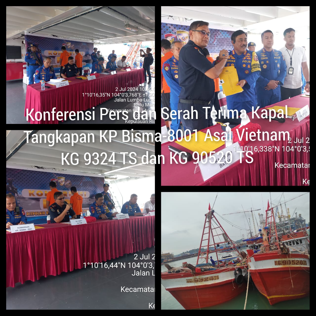 Dipimpin langsung Kasubdit Gakkum Ditpolair Korpolairud Baharkam POLRI, didampingi oleh Komandan Pangkalan PSDKP BATAM, Komandan KP. BISMA -8001, Dir. POLAIRUD Polda Kepri dan Kasi Sidik GAKKUM Ditpolair Korpolairud Baharkam POLRI.