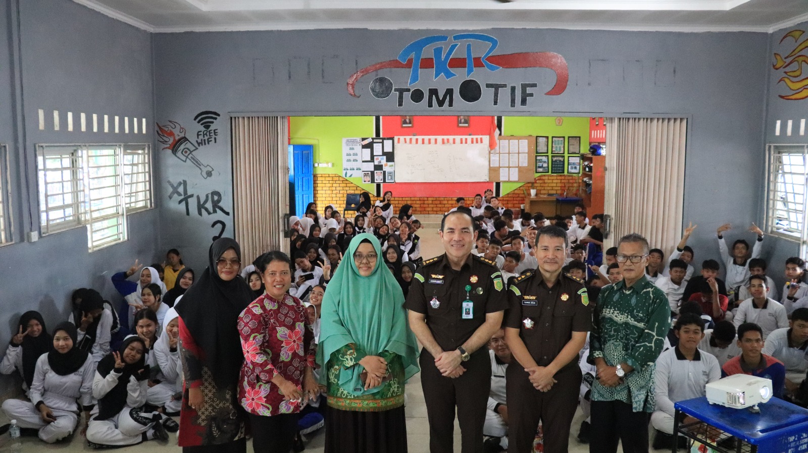 Tanjungpinang, Tintamediakepri.id.Dalam rangka pembentukan Revolusi Mental Karakter Anak Bangsa di Bidang Pendidikan untuk mewujudkan peningkatan kesadaran hukum dalam masyarakat khususnya di bidang Pendidikan, Kejaksaan Tinggi Kepulauan Riau melalui Program Pembinaan Masyarakat Taat Hukum (BINMATKUM) pada kegiatan Penyuluhan Hukum Jaksa Masuk Sekolah (JMS) menyelenggarakan kegiatan Program Jaksa Masuk Sekolah di SMA Negeri 1 Bintan Utara dan SMK Negeri 1 Bintan Utara dengan mengangkat tema “Pencegahan Penyalahgunaan dan Peredaran Narkotika serta Perundungan (Bullying)”, dimana Tim JMS terdiri dari Kasi Penerangan Hukum Yusnar Yusuf, S.H., M.H., Kasi Sosial, Budaya dan Kemasyarakatan Yunius Zega, S.H., M.H dan Anggota Tim lainnya, Kamis (03/10/2024).
