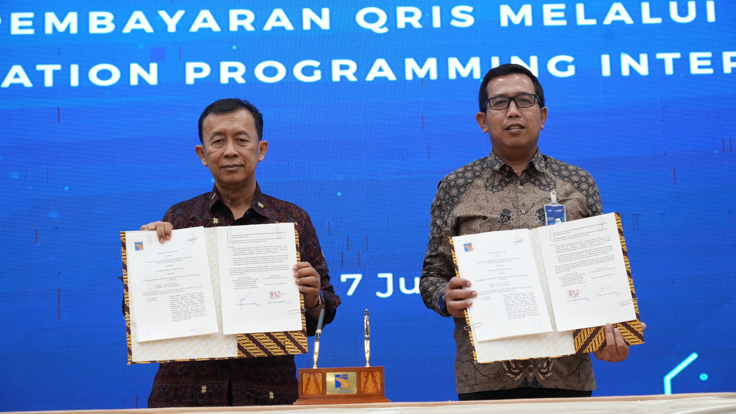 Perjanjian kerja sama ini ditandatangani langsung oleh Anggota/Deputi Bidang Administrasi dan Keuangan BP Batam, Alexander Zulkarnain dengan Regional CEO Region I/Sumatera 1 Bank Mandiri, I Gede Raka Arimbawa.