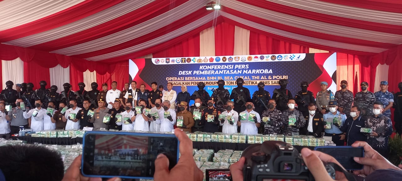Tintamediakepri.id. enam orang pelaku penyeludupan narkotika jenis sabu beserta barang bukti berupa Methamphetamine (sabu) dengan total berat 2 Ton berhasil diamankan Hal ini adalah hasil sinergi operasi gabungan bersama gabungan BNN RI, BEA CUKAI, TNI AL & POLR , penyeludupan narkotika jenis sabu tersebut digagalkan di sekitar Perairan Karimun Anak oleh enamorang pada hari kamis ,22/5